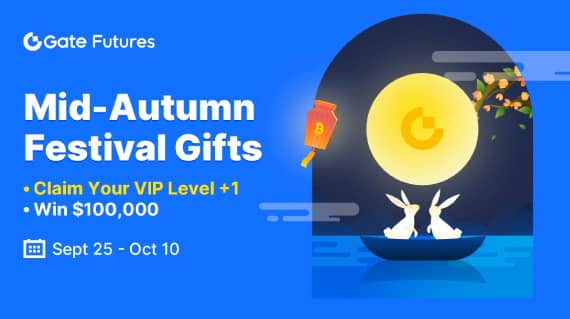 ·September 25 - October 10, Gate.io Mid-Autumn Festival Gifts | Claim Your VIP Level 1 & Win $100,000