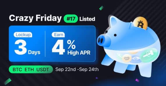 ·September 22 - September 24, Gate.io Crazy Friday#17: Earn 4% High APR on Top Cryptos with 3-Days Lockup Period