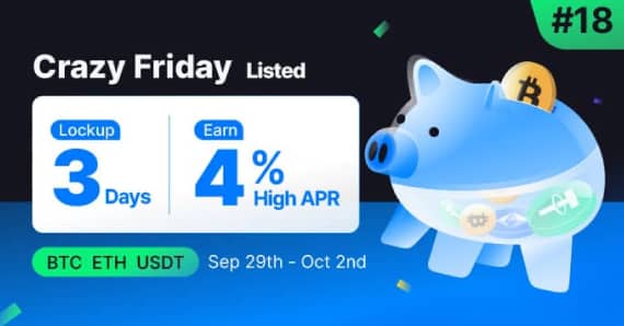 ·September 29 - October 02, Gate.io Crazy Friday#18: Earn 4% High APR on Top Cryptos with 3-Days Lockup Period