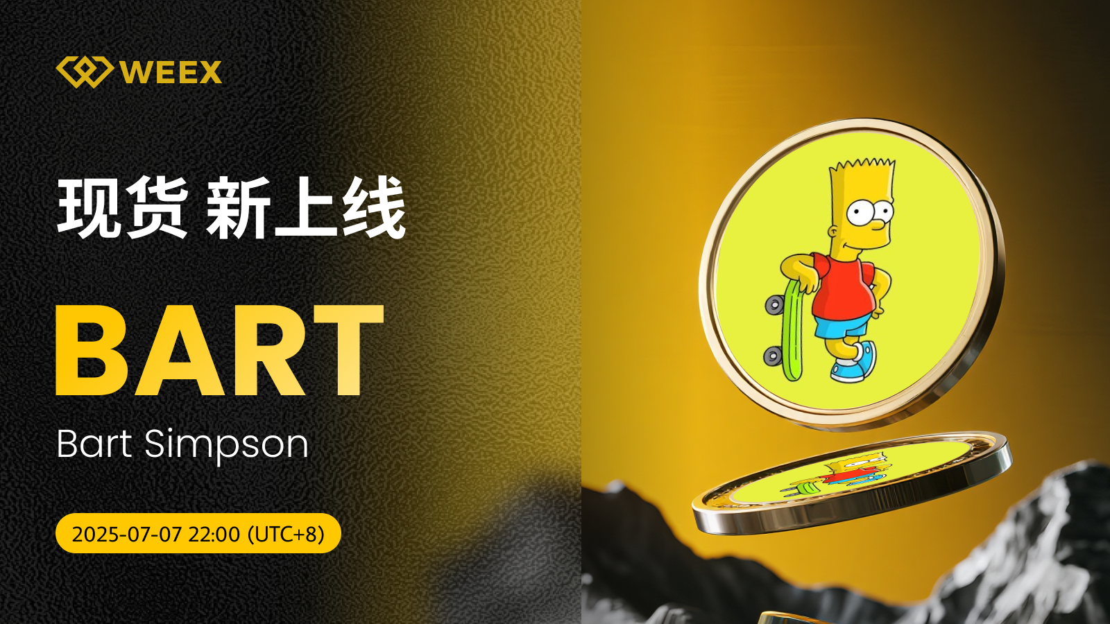 我们很高兴地宣布 Bart Simpson (BART) 现已正式登陆WEEX现货交易区!即日起,您可在WEEX平台进行 BART/USDT交易,详情如下: