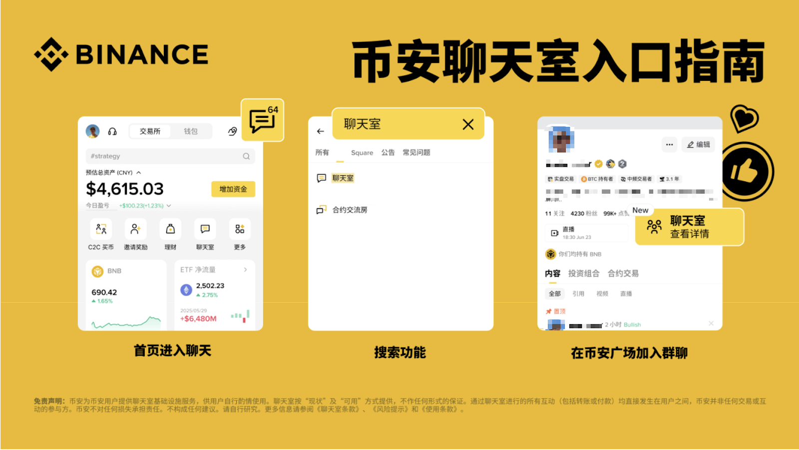 加入群聊:前往币安广场的创作者主页,点击聊天室即可加入群聊。