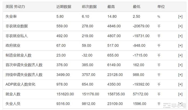 ADP(Automatic Data Processing)是美国自动数据处理公司的缩写,美国ADP就业数据由美国劳工部于每个月的第一个星期三公布,ADP就业数据是对美国非农就业人口的提前预测,因此也被称为“小非农”。每周申领失业救济金的人数增减也同样反映出了美国就业和经济情况。