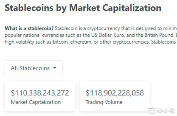 但是就在这一片惨淡之中,稳定币的行情似乎并没有受到整体下跌的影响。同样据coingecko统计数据显示,当前稳定币的总市值已经突破1100亿美元,达到1103.3亿美元,处于历史高位水平。
