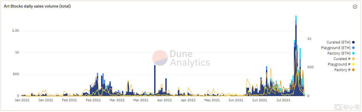(数据来源:https://duneanalytics.com/rantum/Art-Blocks-total-sales )