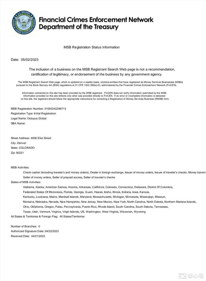 Octopus Global是一家提供数字资产交易服务的公司,为保障投资者的权益和合规性,了解该公司是否在美国持有货币服务业务(MSB)许可证非常重要。