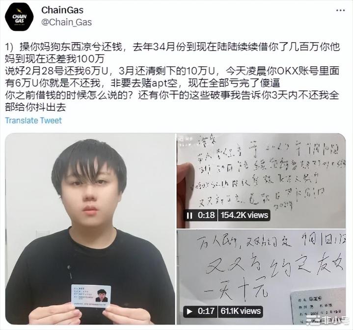 另外,宣布在2023年10月3日,币圈第一割币神孙割曾向凉兮支付了10万美元,声称自己被凉兮割了。这一举动引发了广泛关注。