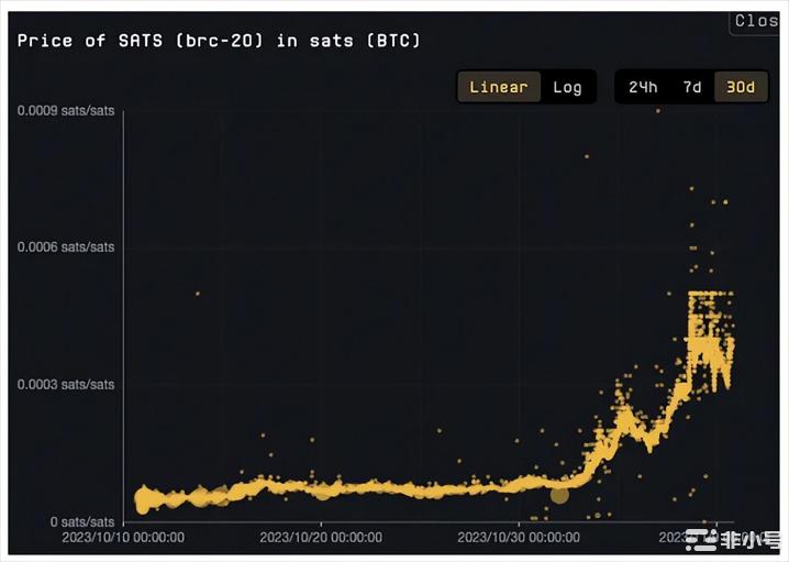 sats这个币,是brc20上目前市值已经超越ordi了,这个可能成为下一个shibi,或者doge,这样的memen币,因为便宜,持币地址多,很有可能会成为下一个疯狂CX的币,我感觉疯狂还会持续,这个热潮还会持续到12月份。