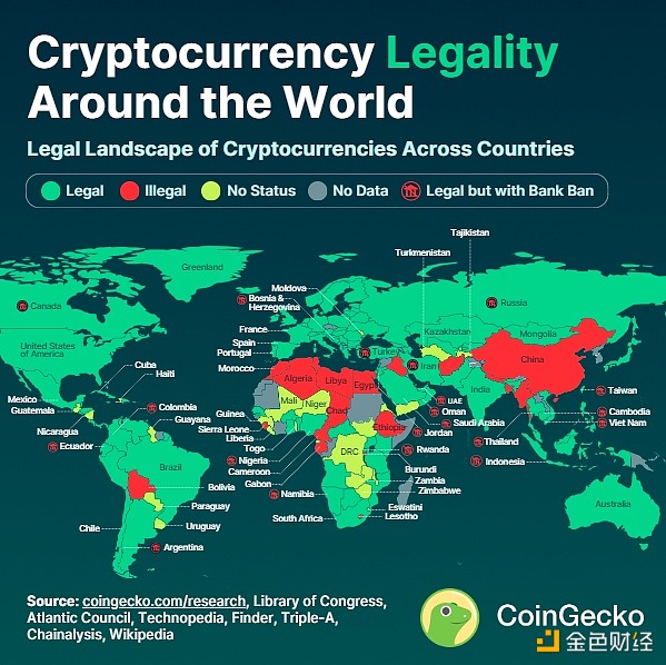 加密货币在哪些国家合法?多少个国家制定了加密法?