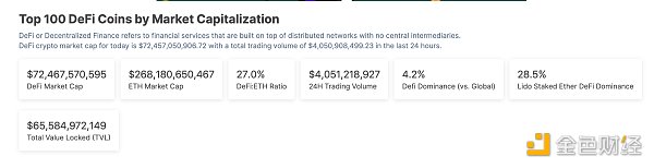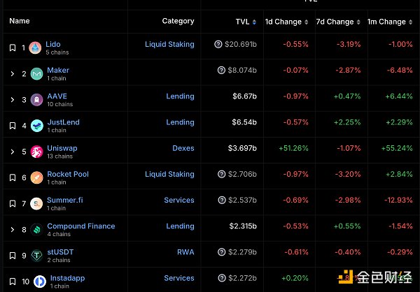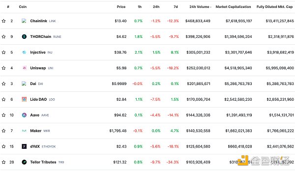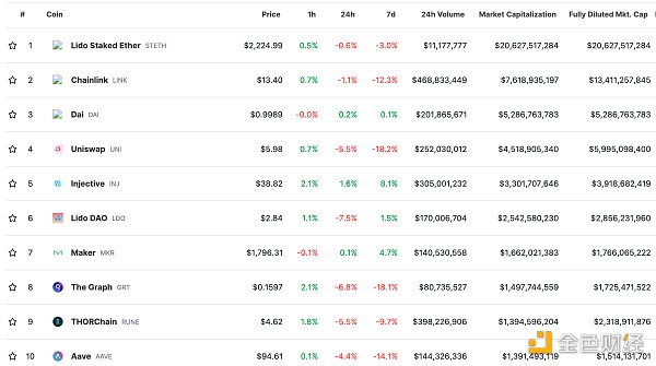 DeFi总市值及前十代币 数据来源:coingecko