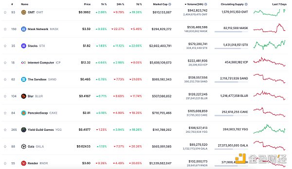 24小时NFT交易量、交易量前十项目 数据来源:Coinmarketcap