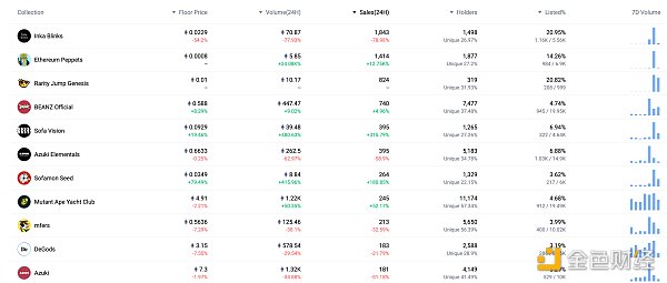 24小时内销售前十的NFT 数据来源:NFTGO
