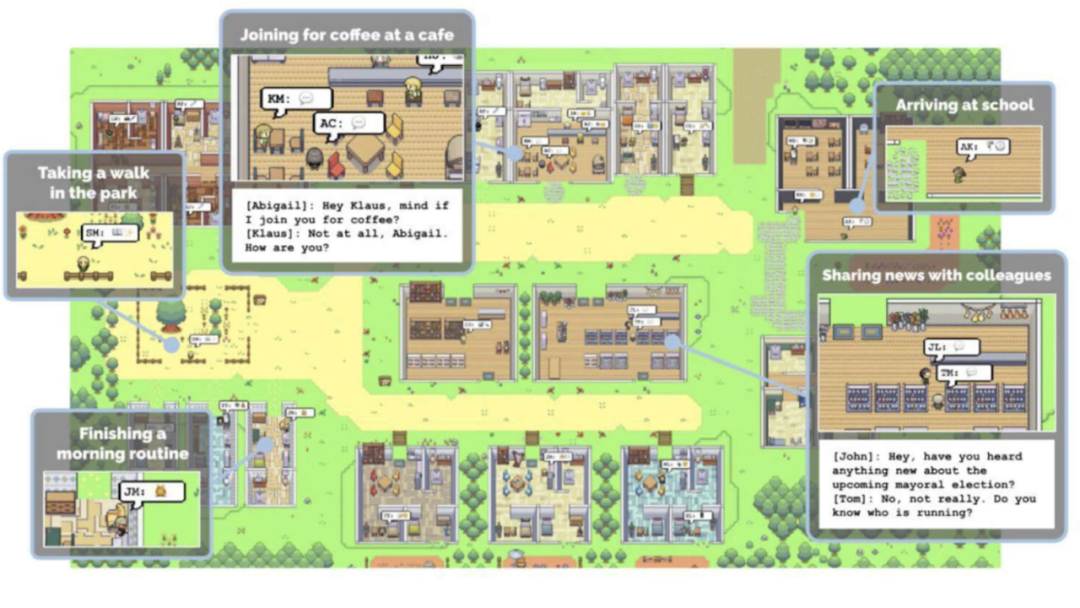 虽然 web2 中有很多关于新游戏的好例子,但在这里我们将重点介绍 web3 的例子。值得一提的是这篇学术文章《**Generative Agents: Interactive Simulacra of Human Behavior》**唤醒了许多人对多人工智能代理游戏环境的可能性探索。来自斯坦福大学和谷歌的研究人员通过将 LLM 应用于沙盒游戏环境中的代理展示了这种潜力。由 LLM 驱动的代理表现出令人印象深刻的行为包括传播派对邀请,建立友谊,约会,以及协调大家按时参加聚会等等,所有这些都基于单一的用户指定建议。该方法利用了一种架构,该架构扩展了 LLM 以存储和合成更高级别的反馈,从而让代理能够实现更为动态的行为规划。