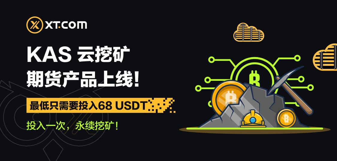 👉 XT.COM理财推出KAS云挖矿期货产品,用更低的价格投资未来无限的收益!最低只需要投入68 USDT,便可获得未来永续的KAS挖矿产出。投入一次,永续挖矿!