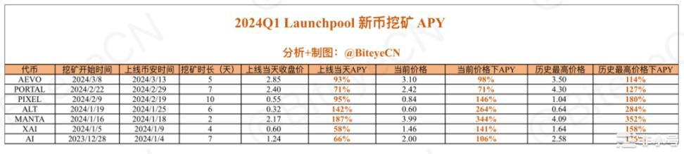 1) 2024 Q1 至今 Launchpool 新币挖矿收益率