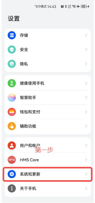 第一步:打开手机设置,点击【系统和更新】