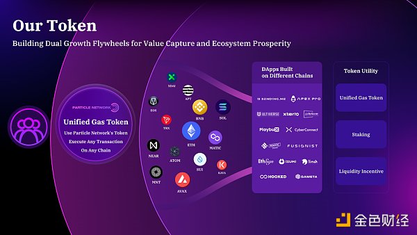 Particle Network 的代币将作为 Particle 通用账户模型中的关键组件,由其模块化 L1 提供支持。通用账户执行的交易(通常是跨链操作)仅依赖于该代币来执行,而不需要多个独立的原生 Gas 代币。
