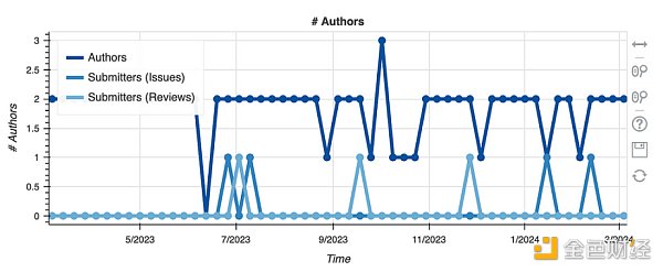 其对项目的代码开发仍然维持正常水平,开发人员也保持稳定。