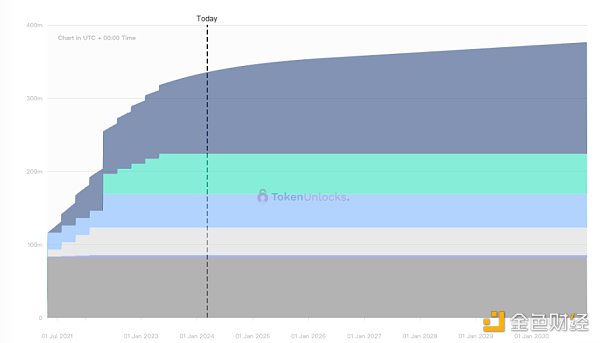 流动性激励预计持续到 2030 年末,官方假设年通胀率为 2%,每周下降 1.1%,直至 2026 年 4 月。该代币的释放图如上图所示,我们预计在大约在 2025 年 5 月 1 日作为截止日期,其大约会流通 2.7 亿枚,整体来说增长不多,对牛市的代币价格没有什么影响。