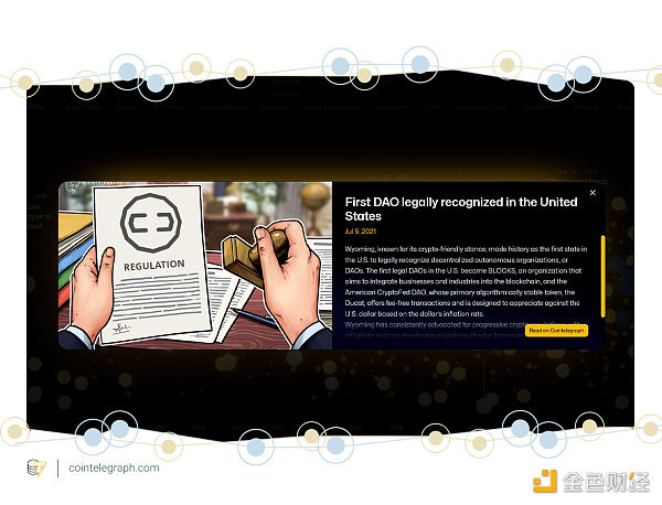 DAO 是一个由强制数字规则管辖的组织,没有层级管理。 它与比特币类似,试图摆脱交易中的所有中间商。