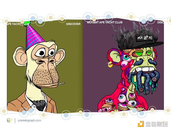 Bored Ape Yacht Club 和 Mutant Ape Yacht Club NFT 的示例。 来源:BAYC