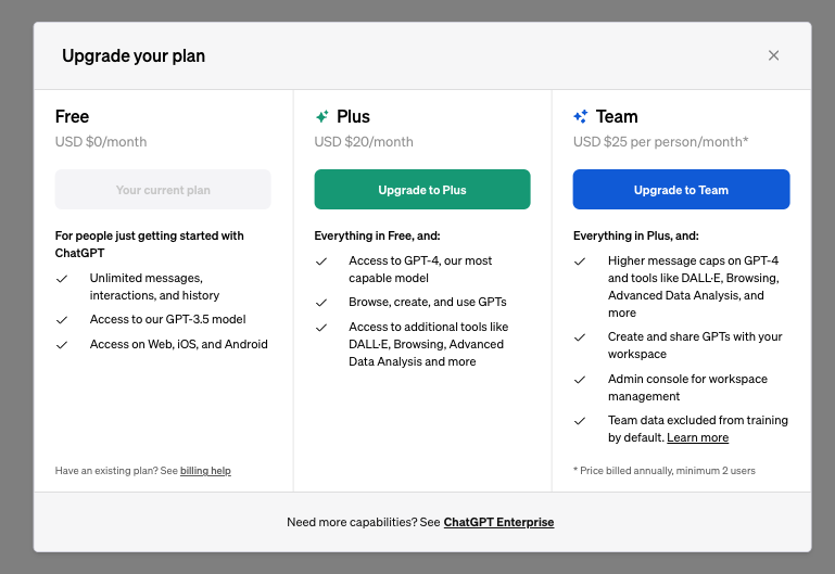 1. 注册并登录 ChatGPT 官方网站,点击左下角的「Upgrade plan」