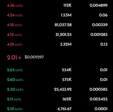 但实际上观察订单簿可以发现,当前在 RuneChain 上的成交并不活跃,仍以 RUNIX 为例,买卖五档挂单仅 0.22 BTC,买一和卖一的差价更是高达 150% ,RuneChain 并未带来显著的流动性增强。