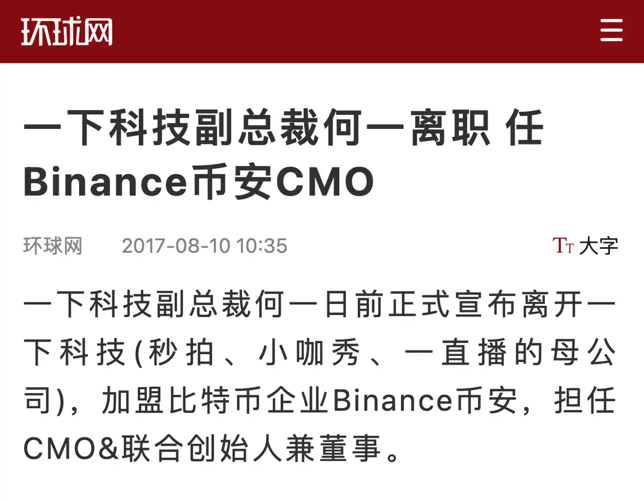 「前些日子,刚刚听说币安(全称币安区块链资产交易平台)进来一位即将担任要职的神秘嘉宾,被誉为「科技圈举足轻重的创业者、多个互联网知名爆品的幕后推手」……当时看币安的竞猜活动介绍着实吓了一跳,心情也跟着吊了起来。」