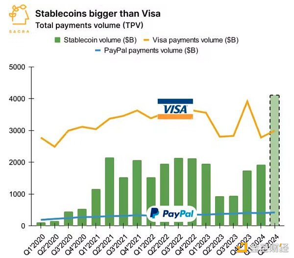 本季度稳定币交易量能否超过 Visa?