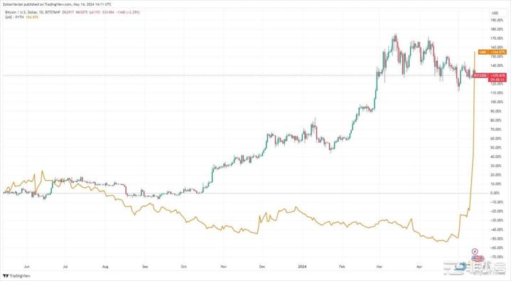一条推文在美股交易和加密社区中同时疯传,五小时浏览量突破 600 万次。这条推文来自曾经的美股员 Roaring Kitty,这是他时隔三年后发的第一条推文。尽管没人说得清推文内容代表了什么,许多人在X上高呼「Roaring Kitty 回来了」!熟悉的风致使meme 股狂热卷土重来,GameStop (GME) 的价格继周一上涨 74% 后,周二飙升 60%。 根据 TradingView 的数据,在年度图表上,GameStop 股票的回报为 154% 以上,比特币的年回报为 129% 左右,而 GameStop 的大部分涨幅来自过去两天,收益轻松超过 BTC。Meme股GME重现江湖