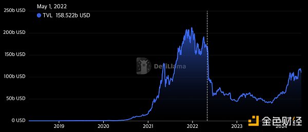 整体 DeFi 协议的 TVL 趋势, 来源: Defi Llama