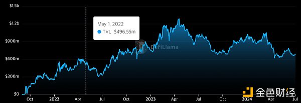GMX 协议 TVL 趋势, 来源: Defi Llama