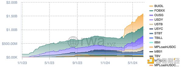 美国国债代币化工具划分的市值趋势,来源:rwa.xyz