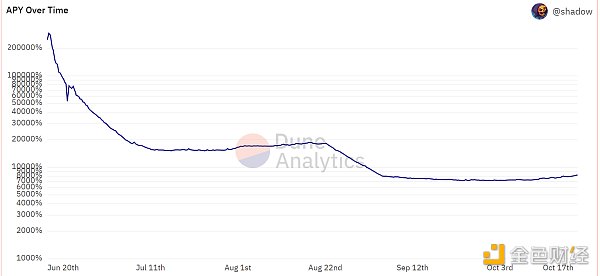 Olympus DAO 质押 APY, 来源: @shadow Dune Dashboard