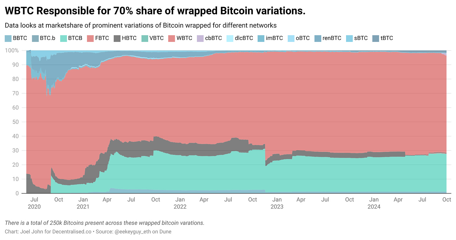 下图展示了我们今天对比特币包装的各种变化。其中许多是在 DeFi 夏天期间铸造的,以便使用比特币在以太坊上创造收益。
