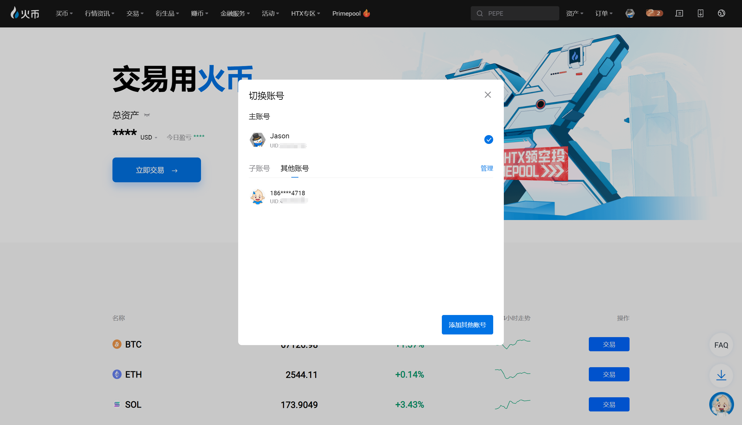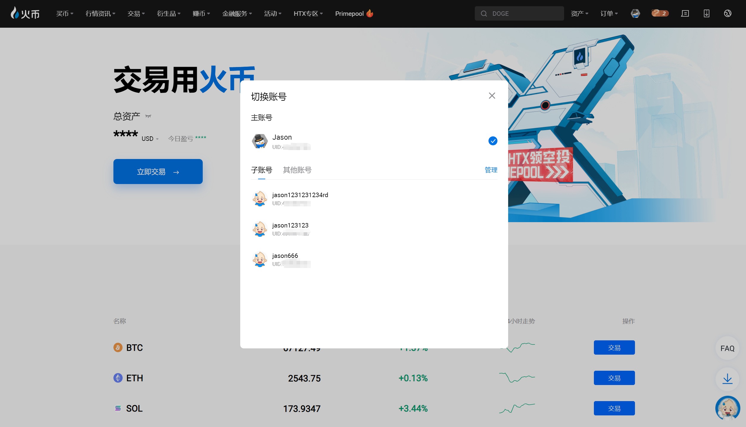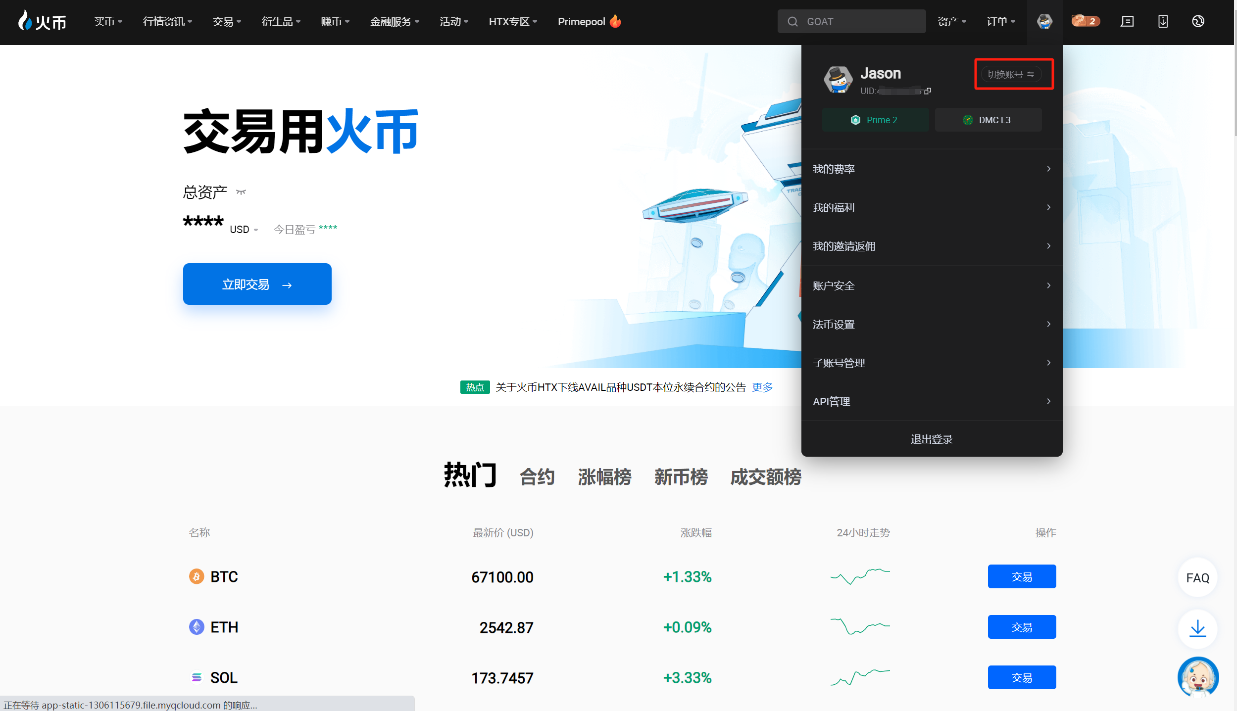 火币HTX Web端上线账号切换功能