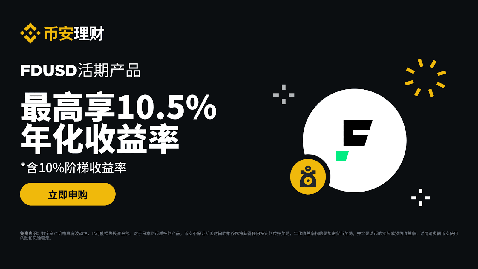币安理财福利再续:申购FDUSD活期产品最高享10.5%年化收益!