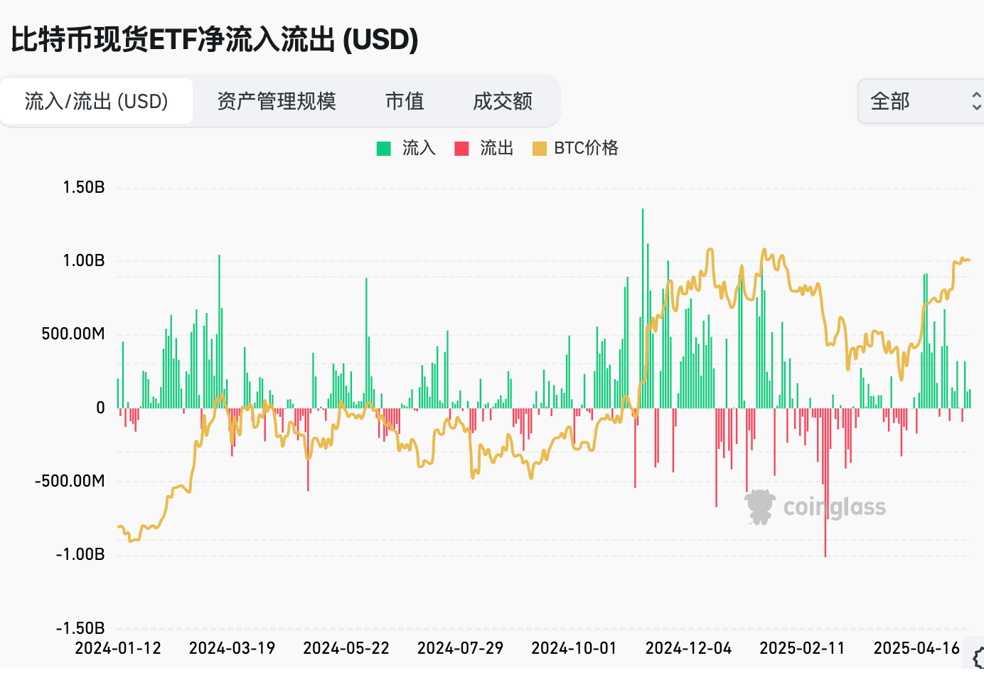 据统计,在5月12日-5月16日期间,美国比特币现货ETF净流入:6.078亿美元;截止到5月16日,GBTC(灰度)共计流出:229.44亿美元,目前持有196.35亿美元,IBIT(贝莱德)目前持有654.35亿美元。美国比特币现货ETF总市值为:1251.31亿美元。