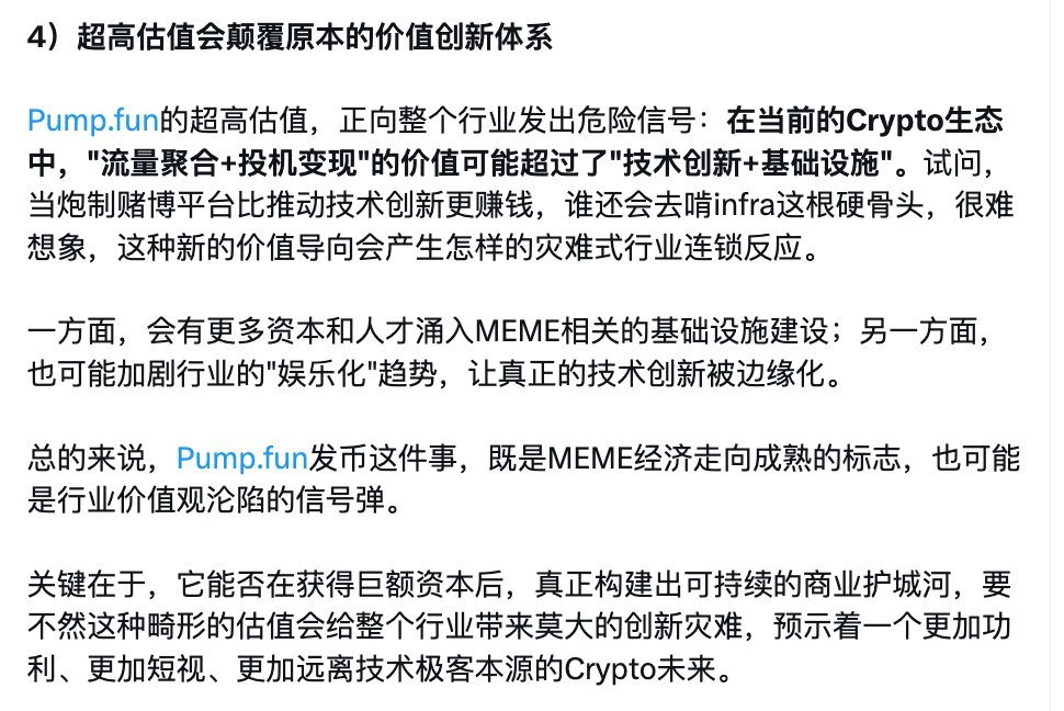 社区当前对 Pump 发币普遍持怀疑态度,例如研究员 Haotian 认为: “很难想象,一个MEME发射平台,估值竟然超越了大部分DeFi蓝筹协议。这或许既是MEME经济走向成熟的标志,也可能是行业价值观沦陷的信号弹。”
