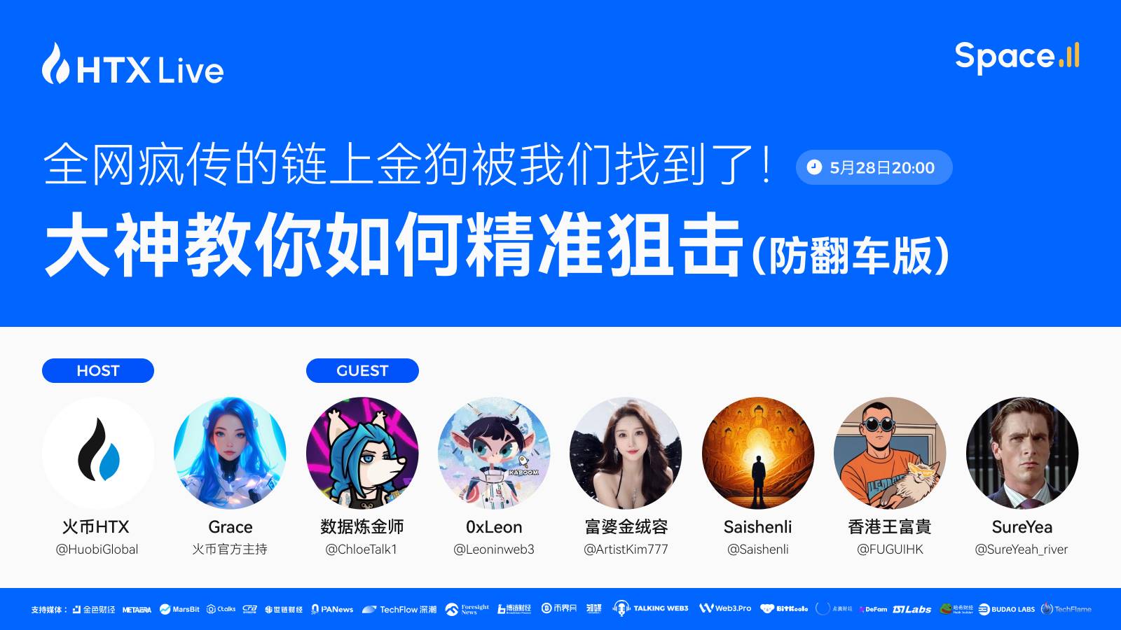在当今这个瞬息万变的加密世界,抓住链上机会的能力至关重要。许多投资者在追逐财富的道路上迷失,而真正的成功往往源于对市场的敏锐洞察和团队的合作支持。为了帮助大家在这个领域中更有效地捕捉机会,火币HTX于5月28日20时举办了一场主题直播——“全网疯传的链上金狗被我们找到了!大神教你如何精准狙击(防翻车版)”。多位加密领域的KOL,如数据炼金师、0xLeon、富婆金绒容、Saishenli、香港王富贵、SureYeah等,分享了他们的宝贵经验和独到见解。
