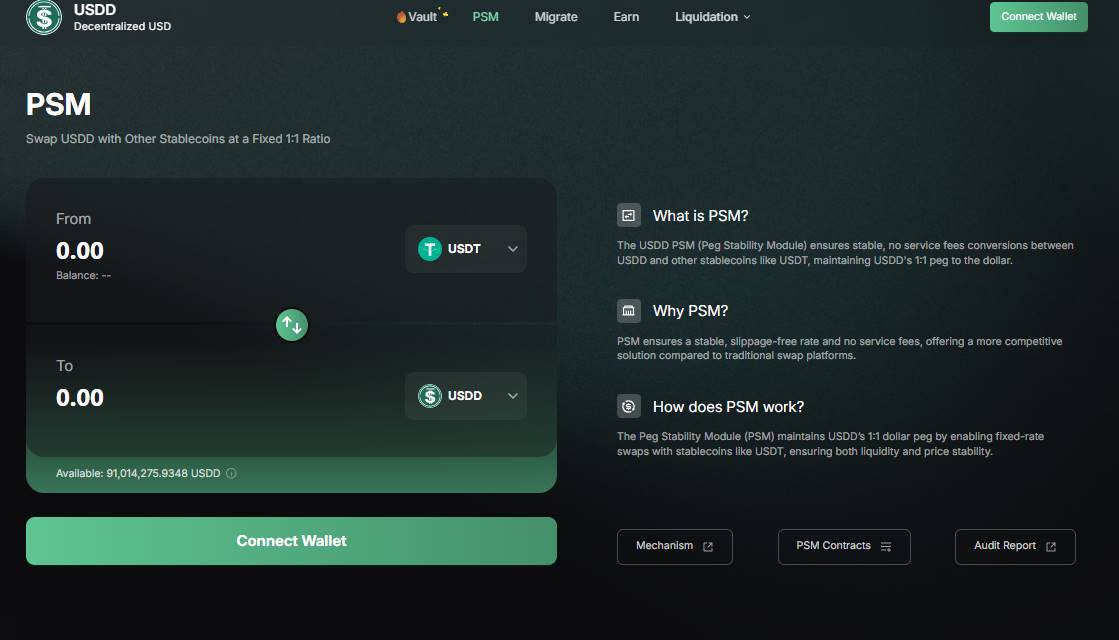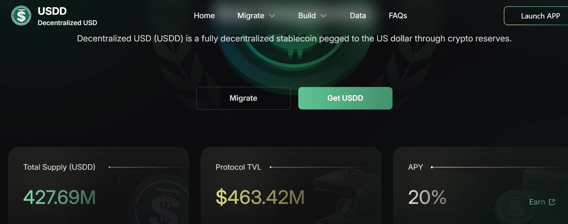 USDD是基于波场TORN的去中心化稳定币。目前,用户可通过两种方式来获取USDD。一是通过超额抵押“TRX、sTRX、USDT”等优质资产来铸造USDD;二是稳定币兑换工具PSM,直接使用USDT按照1:1兑换成USDD,而且整个过程0GAS费和0手续费。