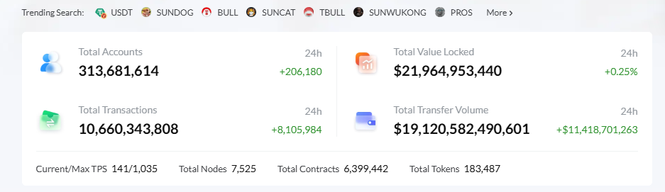 在生态发展层面,波场TRON生态应用已涵盖了交易中枢SUN.io、及MEME资产发行平台SunPump,一站式DeFi解决方案JUST推出的借贷系统JustLend DAO、流动质押协议Staked TRX及能量租赁平台,还有稳定币USDD等等核心协议及产品,共同丰富了波场TRON的DeFi生态发展,为用户提供了丰富多样的选择。