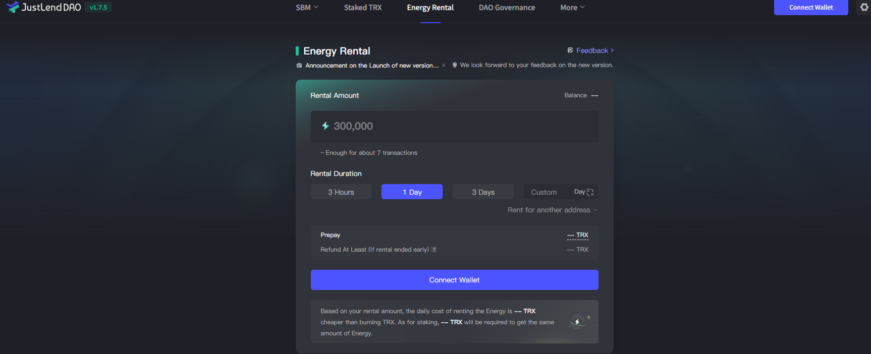 除了借贷产品JustLend外,JustLend DAO还提供Staked TRX质押和能量租赁(Energy Rental)服务。
