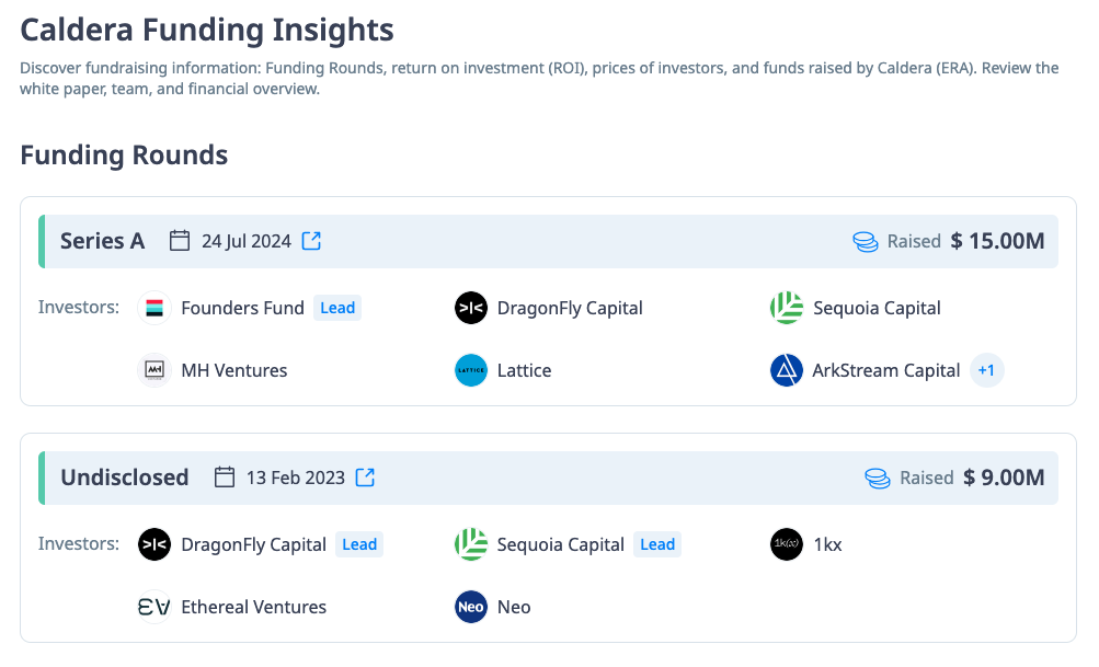 Image Credit: CryptoRank (Caldera Funding Insights)