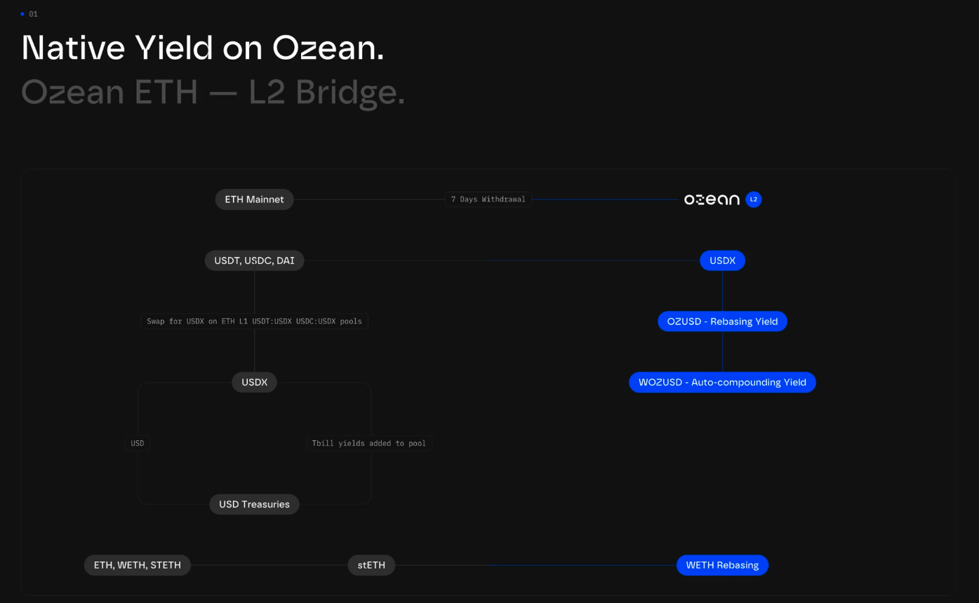Ozean 是一个基于 Optimism 的 Layer-2,专为信贷池和企业债务工具设计。借助 Caldera 工具,它拥有面向机构用户的合规许可层。主网上线后,Ozean 将推出 ERA 质押激励,奖励流动性提供者,并将链上安全与现实资产工作流程紧密结合。