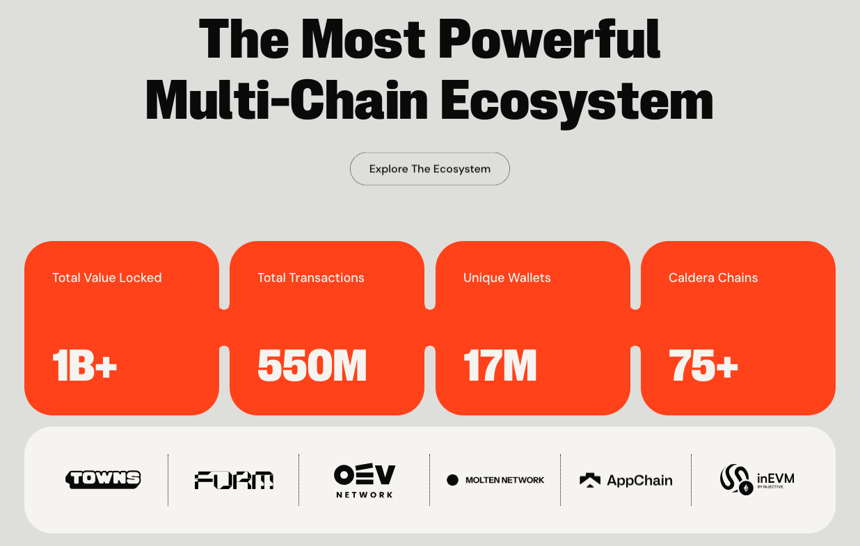 背靠 Founders Fund、Sequoia、Dragonfly 等顶级投资机构,Caldera 已承载 30 多条实盘运行的 Rollup 链,包括专注 NFT 的 RARI Chain、Injective 的 inEVM,以及面向现实资产的 Clearpool Ozean,累计 TVL 超 6 亿美元,独立钱包数量超过 1,000 万。随着定制化 L2 需求持续飙升,Caldera 正成为现代 dApp 团队追求速度、安全与简便的一站式首选平台。