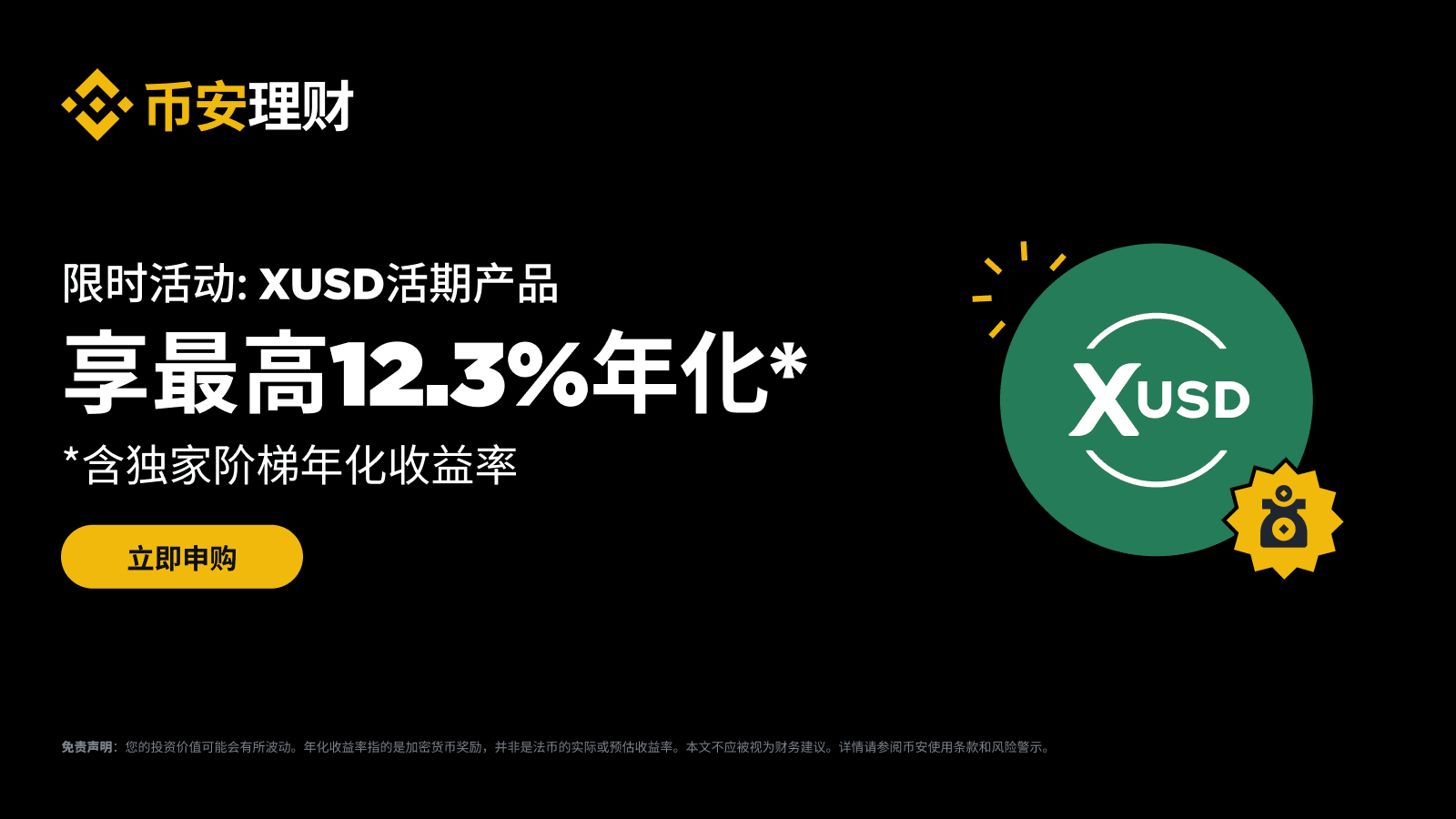 币安理财:申购XUSD活期产品享最高12.3%年化收益率!