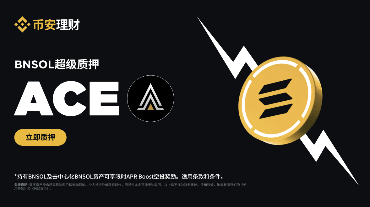 ACE APR Boost空投奖励是在币安SOL质押基础年化利率之上,提供的额外代币空投,为用户提供更高的收益率。
