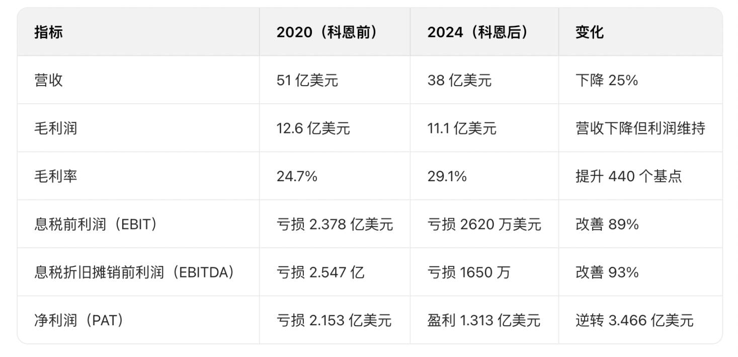 Cohen 接手的是一家营收 51 亿美元、年亏损逾 2 亿美元的公司。经过三年的系统重组,2023-2024 年,他成功带领 GameStop 首次实现盈利。尽管由于关闭门店导致营收缩水 25%,但他仍将毛利率提高了 440 个基点,并将 2.15 亿美元的年亏损转化为 1.31 亿美元的利润。这证明了规模更小小的公司也能带来显著的盈利。