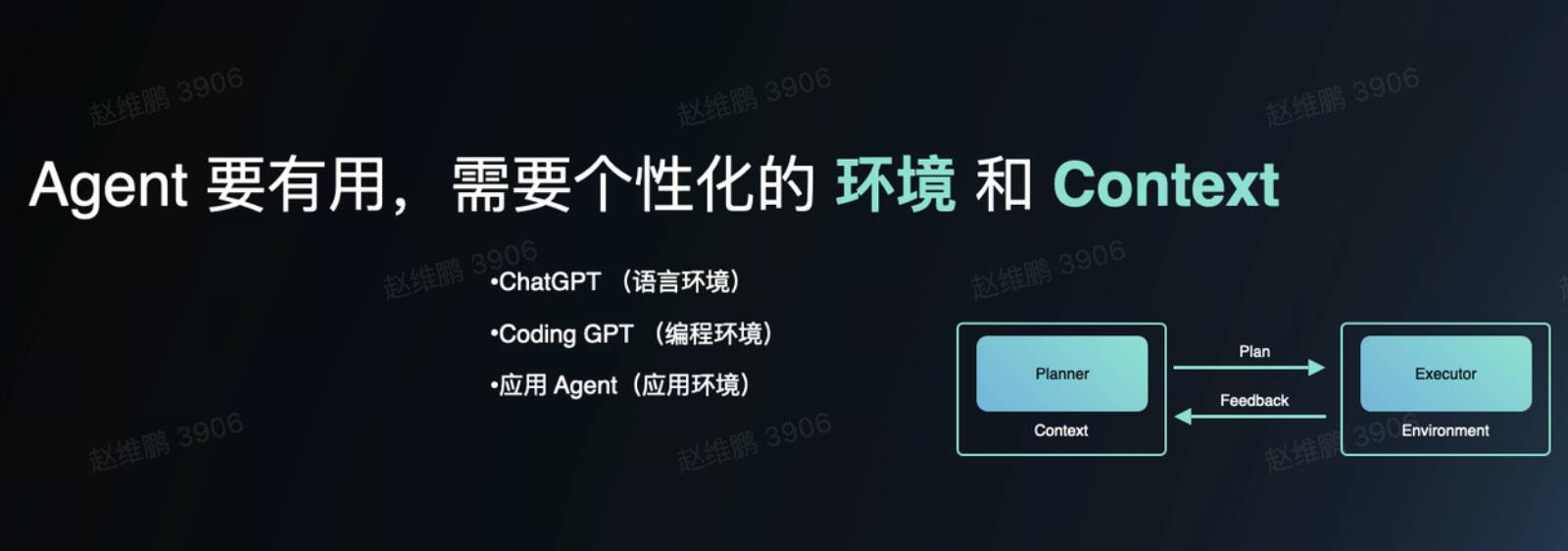 那么,除了大模型之外,最重要的是什么?最重要的是你要有个性化的环境和 Context(上下文)。