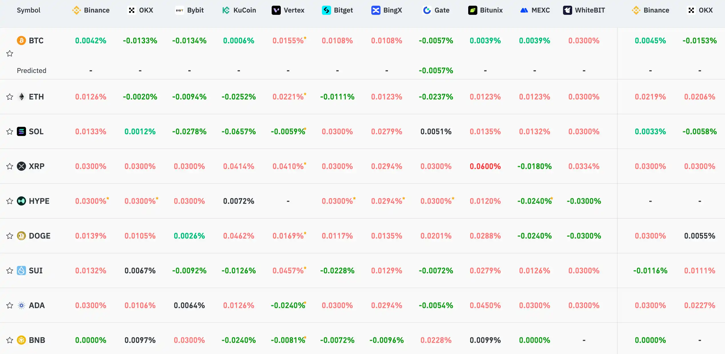 每日市场整体资金热度(根据资金费率反映)与代币解锁